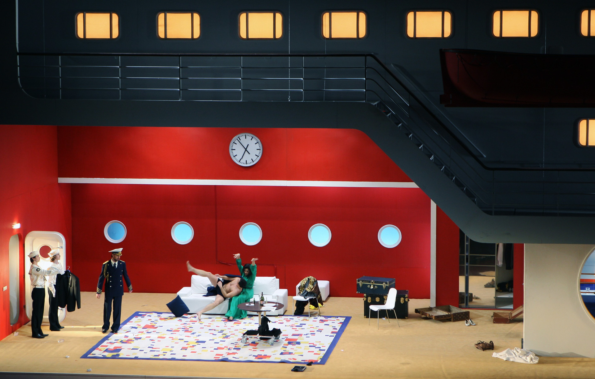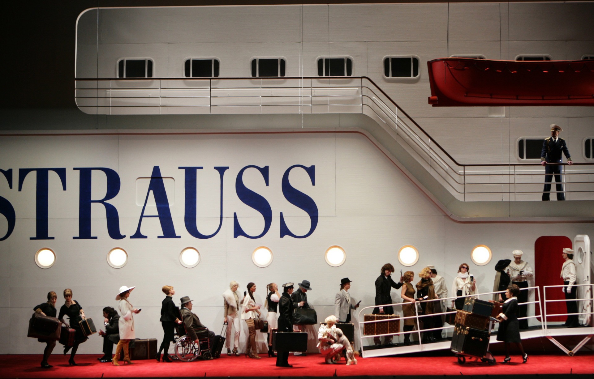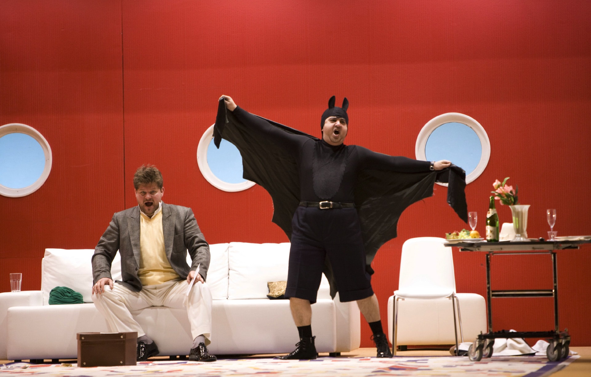 «Летучая мышь». В отличие от западных оперных домов, Большой на протяжении всего ХХ века избегал ставить даже самые «высокие» образцы оперетты. Но в 2010 Василий Бархатов и Зиновий Марголин создали на Новой сцене свою гротескную версию «Летучей мыши» поместив всех героев на роскошный круизный лайнер Johann Strauss в стиле ар-деко, который на поверку оказался «Титаником». 2010 год.